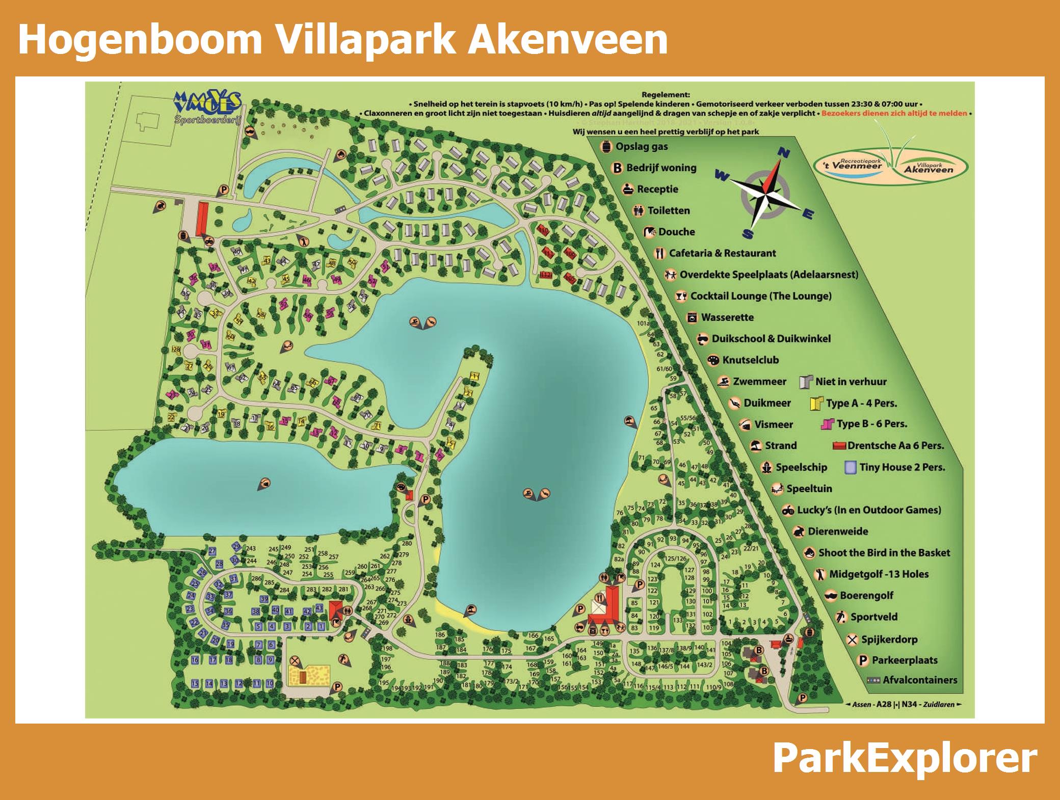 Aktueller und übersichtlicher Parkplan von Akenveen mit alle Unterkünfte und Einrichtungen, auch als PDF herunterladbar.