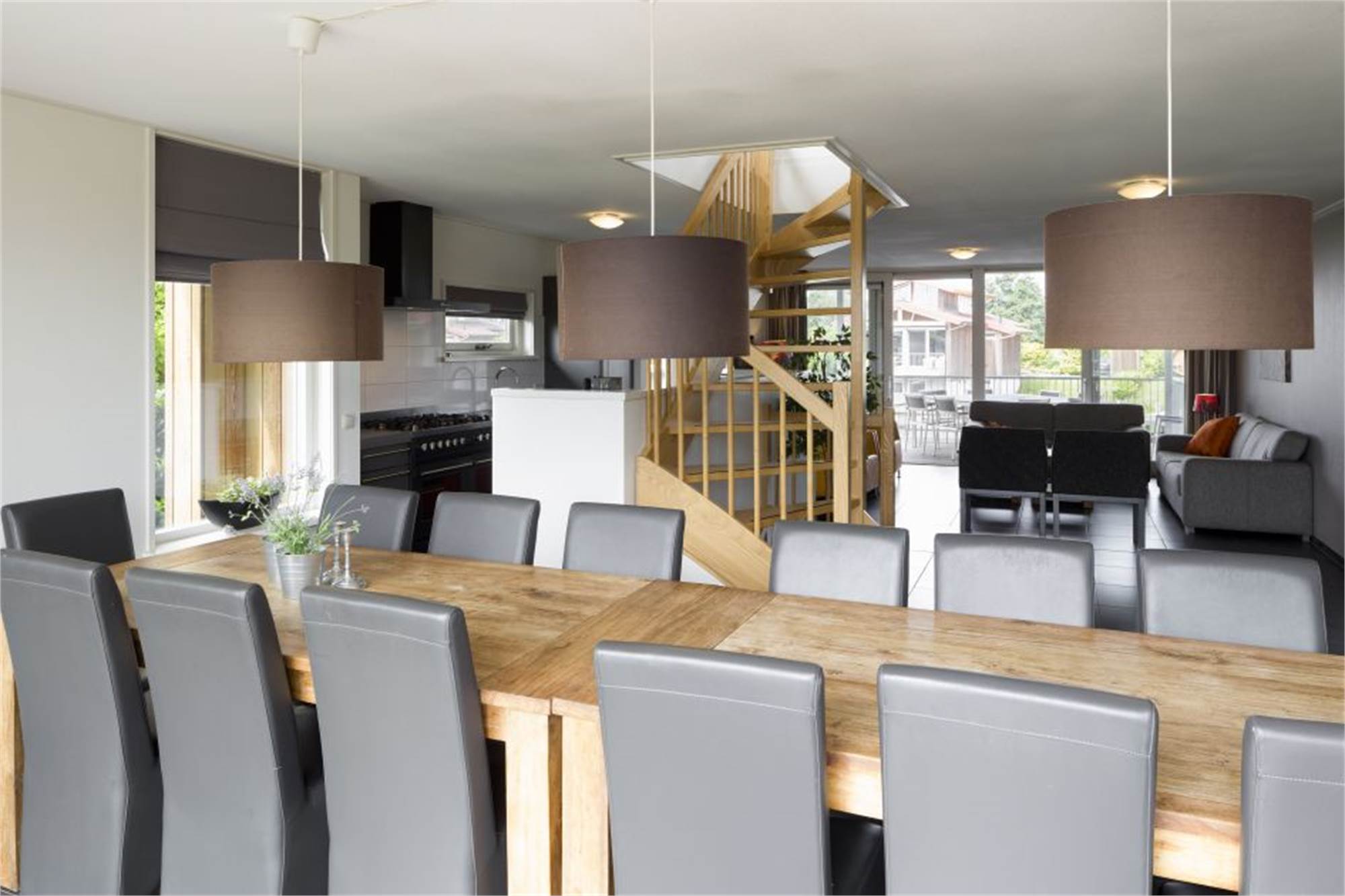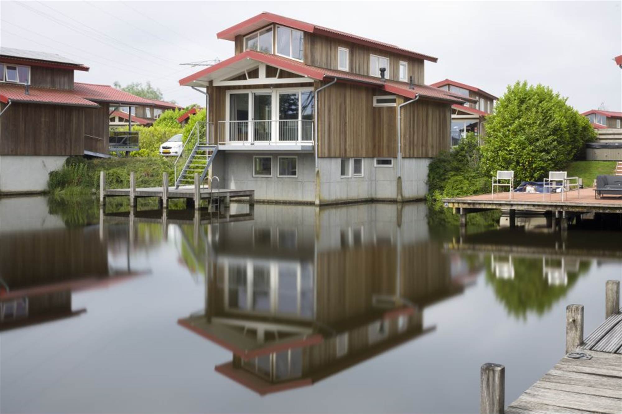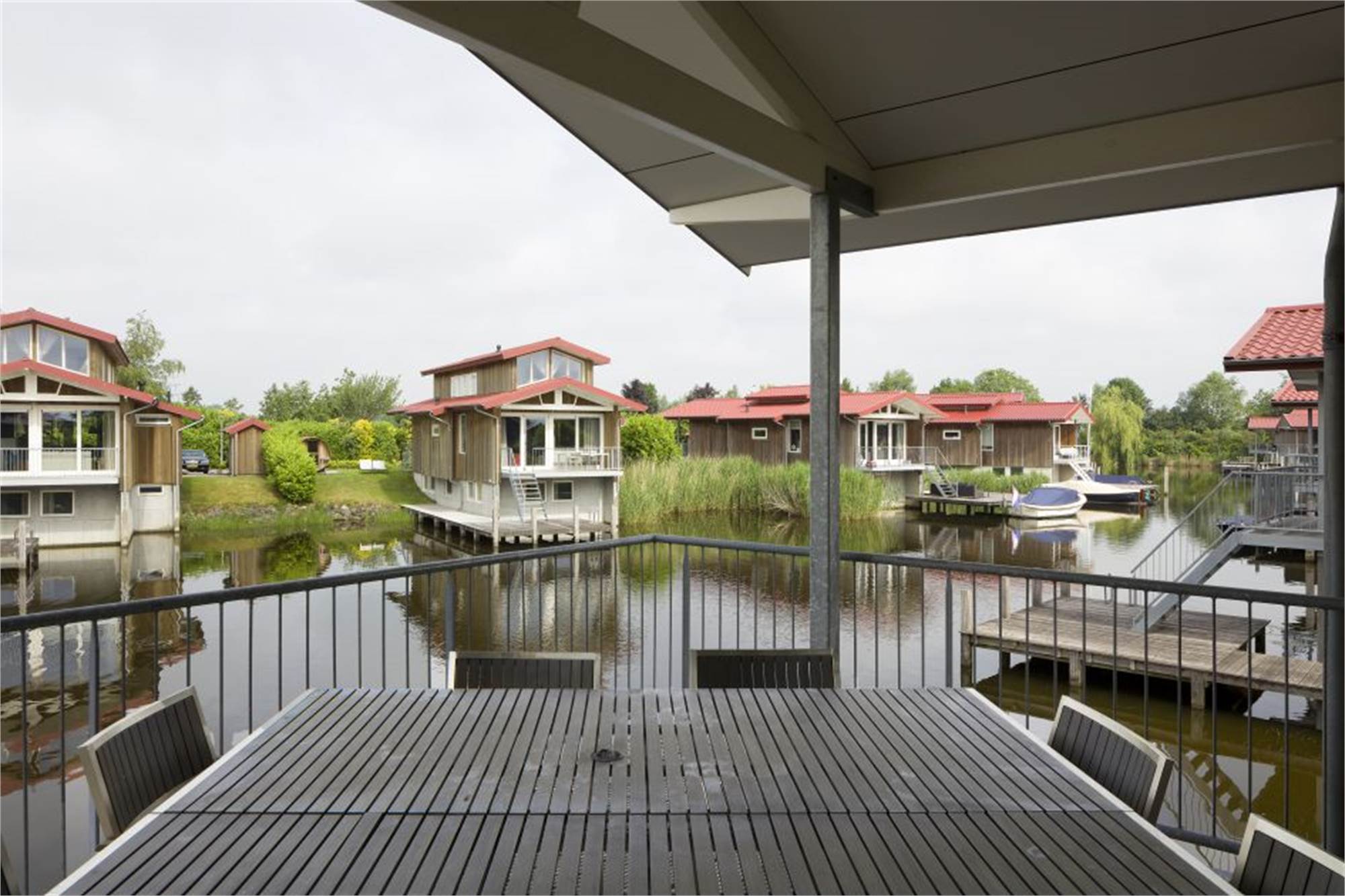 Dieser Bungalow ist für 14 Personen geeignet. Der Bungalow hat 3 Stockwerke, nämlich Untergeschoss,, Erdgeschoss und den ersten Stock. Der Bungalow ist direkt am Wasser gelegen und verfügt über einen eigenen Bootssteg. Draußen gibt es eine Veranda und eine Terrasse. Im Untergeschoss befinden sich 2 Schlafzimmer mit je 2 Einzelbetten. 1 Schlafzimmer verfügt über ein eigenes Badezimmer mit Dusche und Waschbecken. Es gibt auch 2 Schlafzimmer mit Etagenbetten und ein separates Badezimmer. Im ersten Stock befinden sich 2 Schlafzimmer mit je 2 Einzelbetten. Es gibt also insgesamt 6 Schlafzimmer. Es gibt 2 separate Toiletten, 1 im Unter- und 1 im Erdgeschoss. Im Erdgeschoss befindet sich auch die Küche mit Herd, Geschirrspüler und Kühl- und Gefrierschrank. Es sind außerdem eine Waschmaschine und ein Wäschetrockner vorhanden. Am Bungalow ist ein Parkplatz vorhanden. Im Bungalow können Sie WiFi kostenlos nutzen.