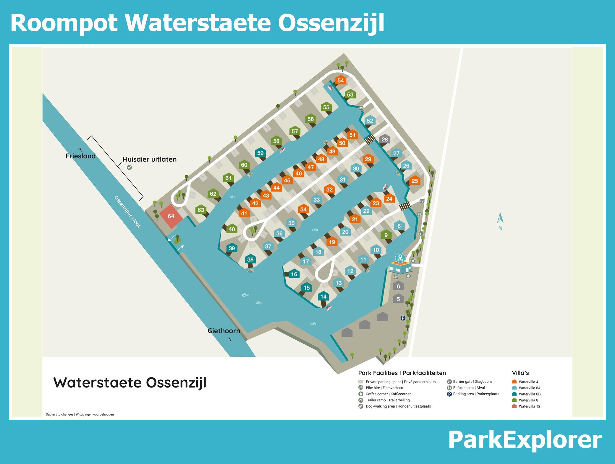 Aktueller und übersichtlicher Parkplan von Waterstaete mit alle Unterkünfte und Einrichtungen, auch als PDF herunterladbar.