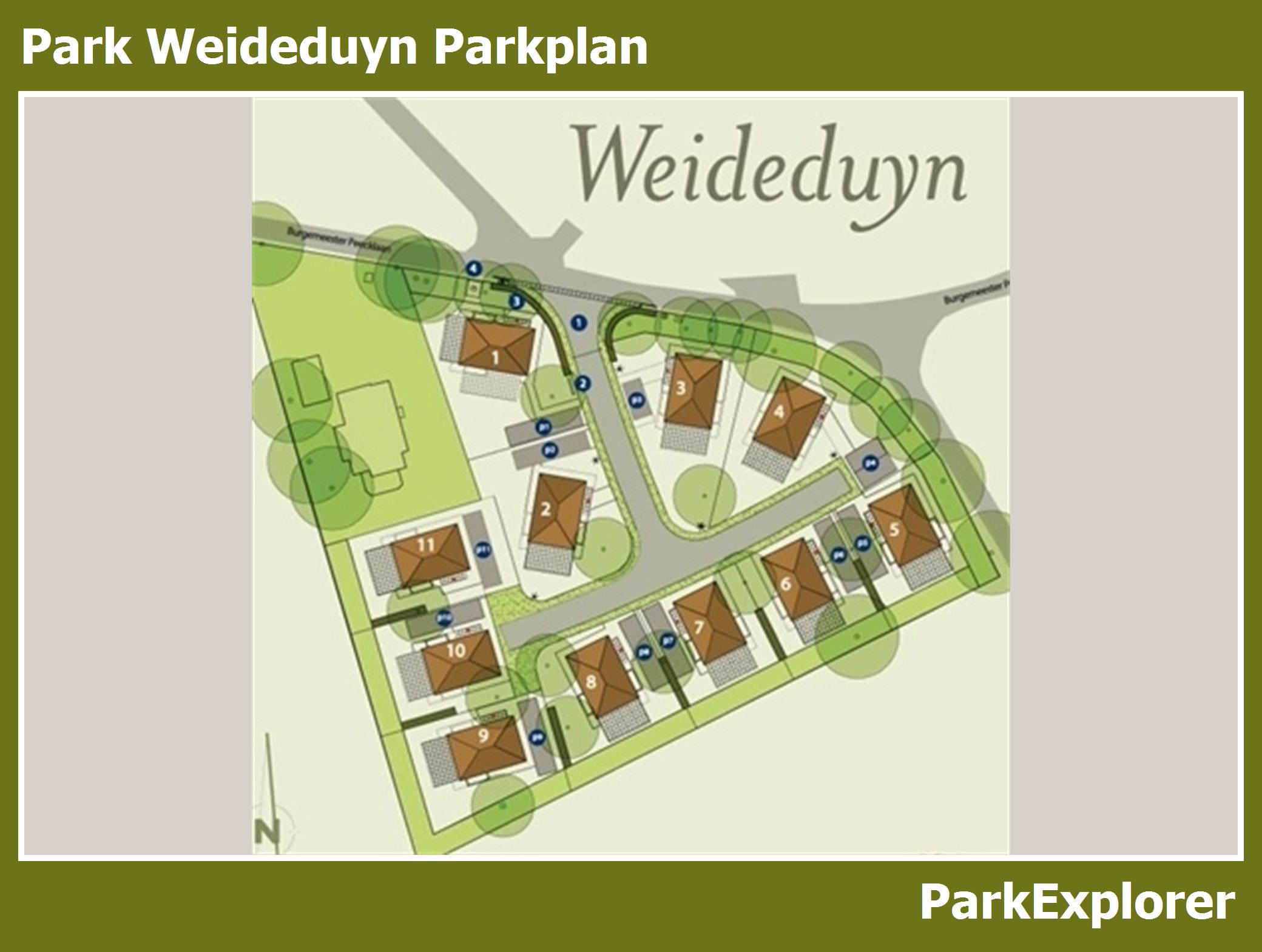 Aktueller und übersichtlicher Parkplan von Weideduyn mit alle Unterkünfte und Einrichtungen, auch als PDF herunterladbar.