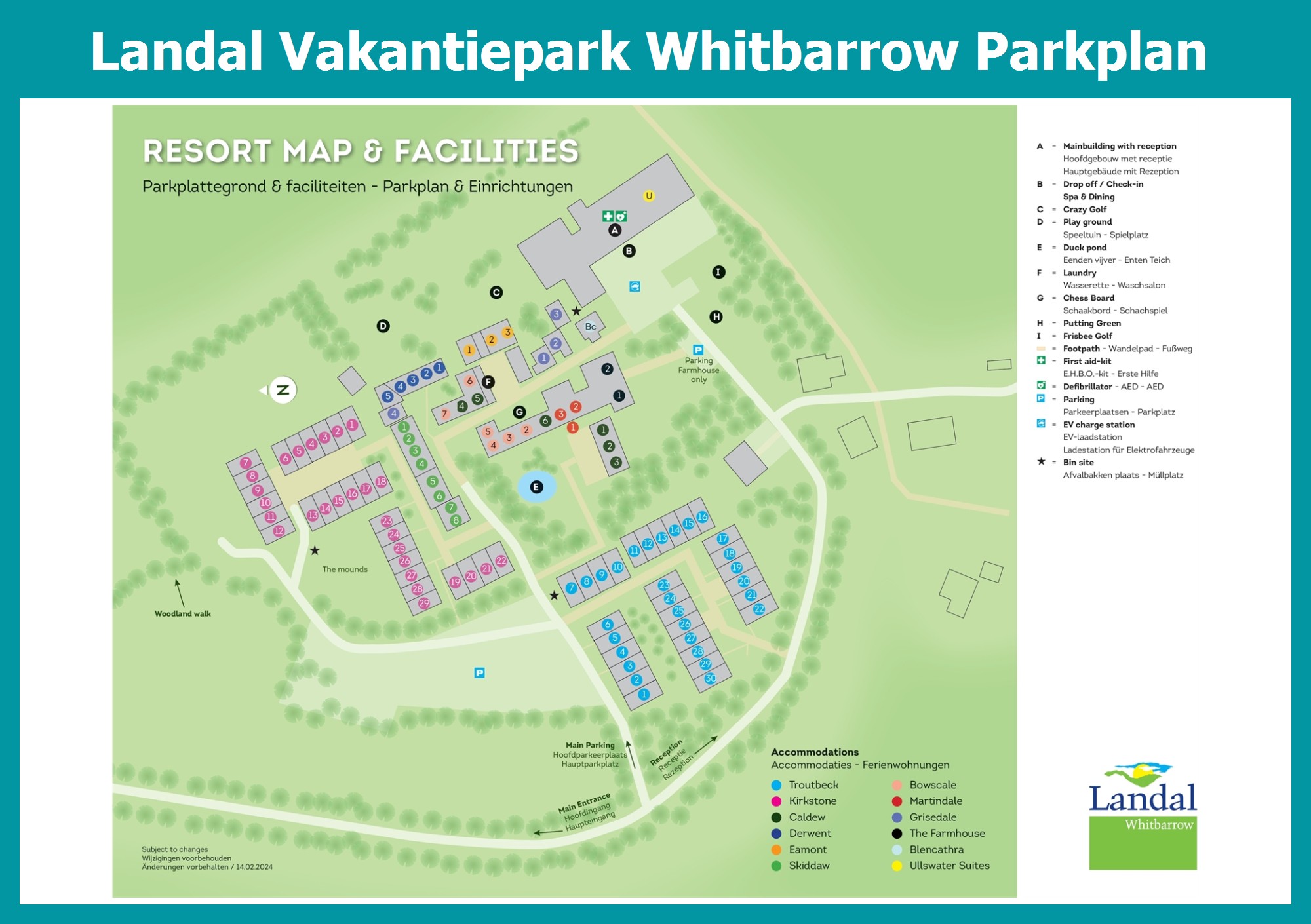 Aktueller und übersichtlicher Parkplan von Landal Vakantiepark Whitbarrow mit alle Unterkünfte und Einrichtungen, auch als PDF herunterladbar.