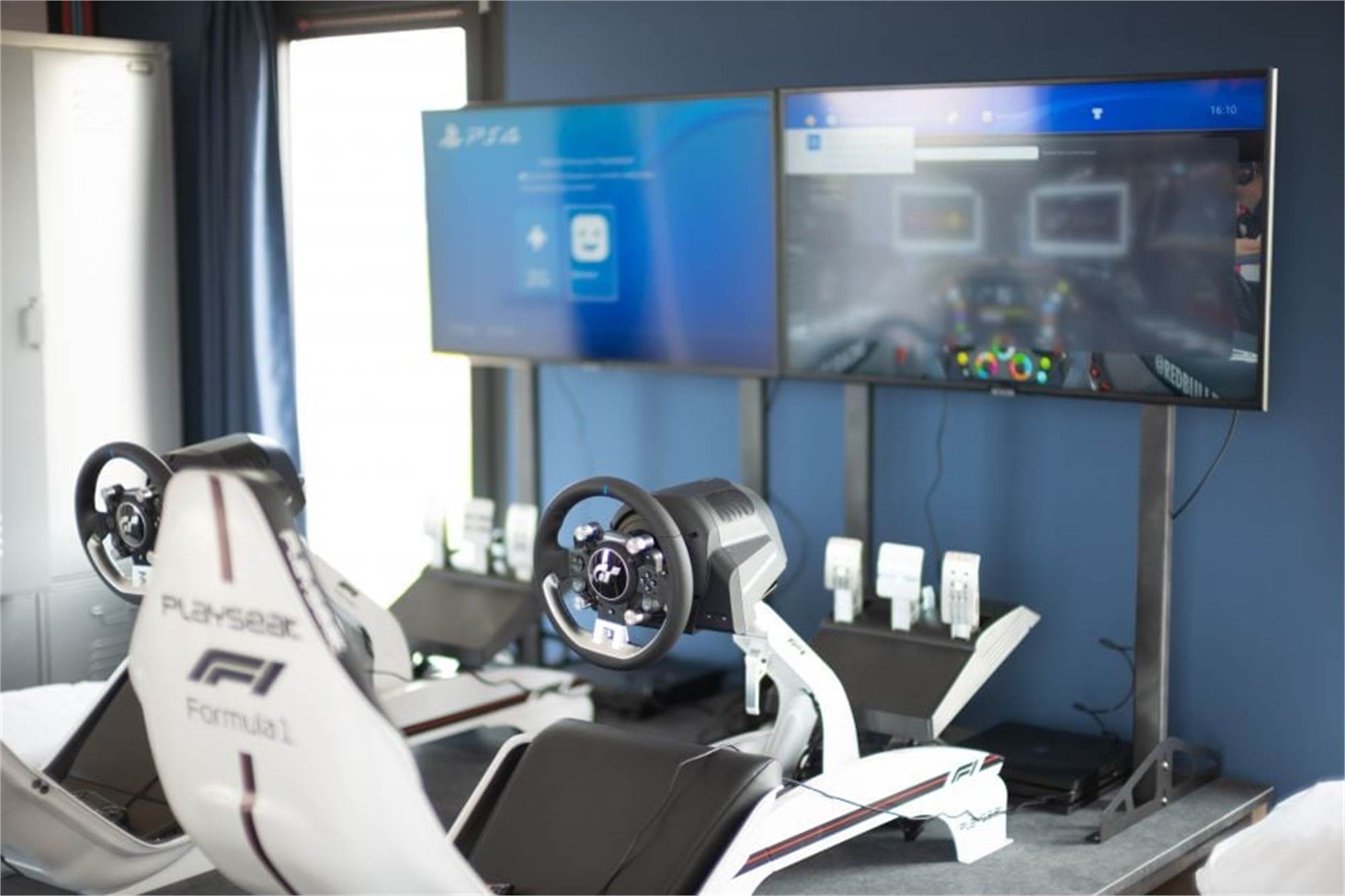 Kann es losgehen? Während des Aufenthalts in der Grand-Prix-Lodge nehmen wir dich mit in die Welt der Rennen, Fahrer und der schnellen Autos. Die besondere Innenausstattung steht ganz im Zeichen der auffälligen Farben von Martini Striping, dem ehemaligen Hauptsponsor der Rennfahrerhelden Helmut Marko und Gijs van Lennep. Sie haben unter der Flagge von Martini 1971 gemeinsam die 24 Stunden von Le Mans gewonnen. Möchtest du selbst einmal Rennfahrer sein? Forder deine Mitreisenden zu einem Rennen auf der Formel-1-Rennstrecke heraus, die nur einen Steinwurf vom Park entfernt ist, oder setze dich hinter das Steuer eines der Rennsimulatoren in der Lodge.