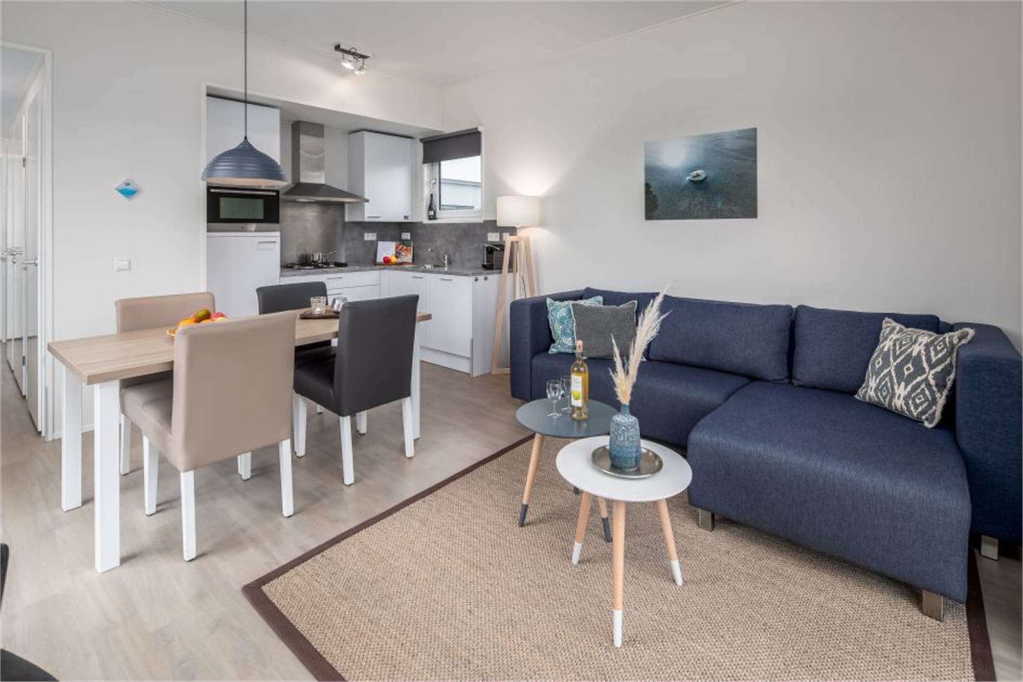 Diese freistehende ebenerdige Lodge eignet sich für 4 Personen. Im Wohnzimmer finden Sie eine gemütliche Sitzecke mit Smart-TV. Die Küche ist mit Geschirrspüler, Kaffeepadmaschine, Wasserkocher, Kombi-Mikrowelle und Kühl-/Gefrierkombination ausgestattet. Die Lodge bietet 2 Schlafzimmer mit Boxspringbetten. Außerdem gibt es ein Badezimmer mit Dusche und ein separates Gäste-WC. Im Außenbereich finden Sie einen Garten mit Gartenmöbeln sowie eine Parkmöglichkeit für ein Auto. Die Nutzung von WiFi ist gratis.