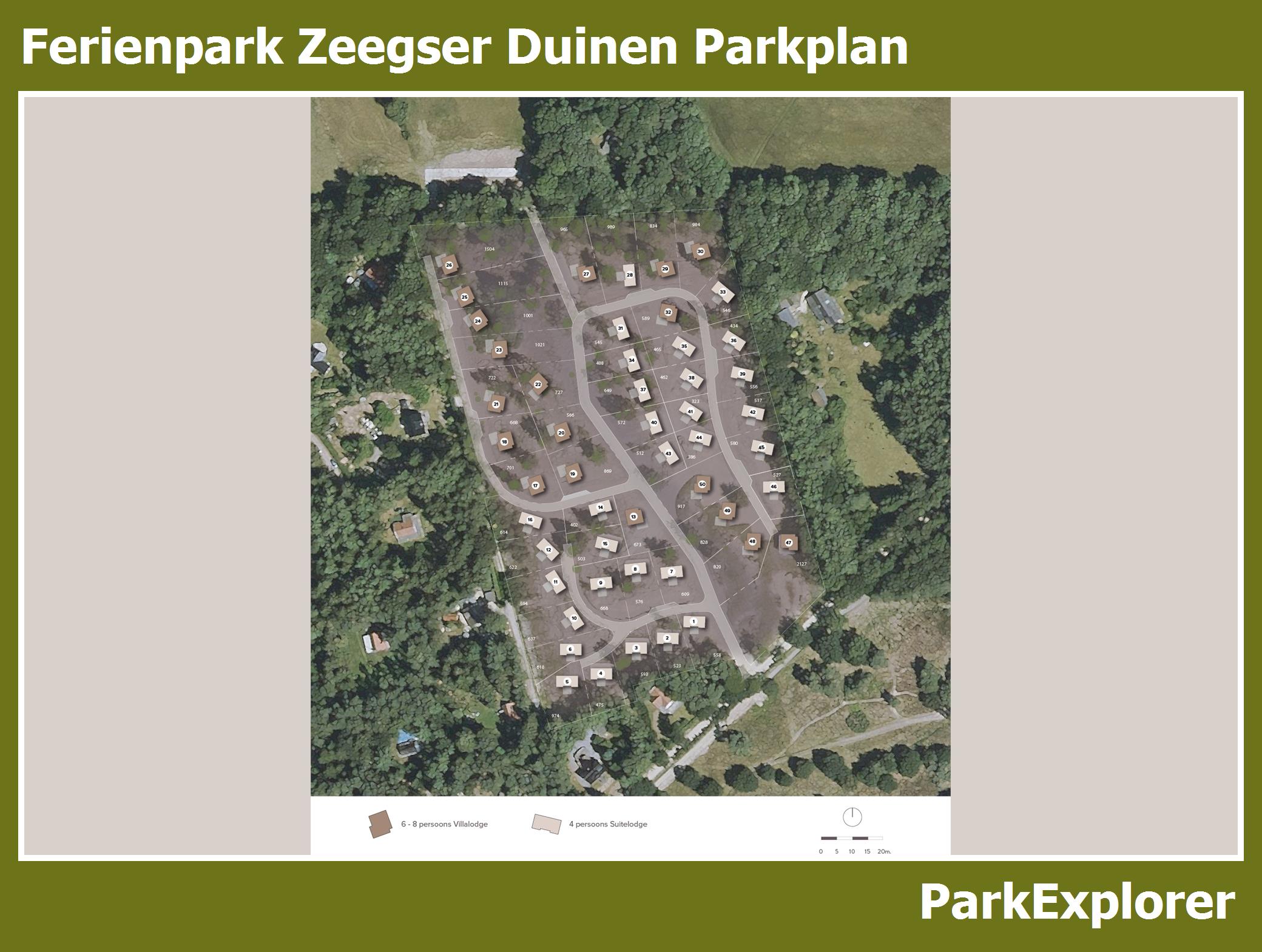 Aktueller und übersichtlicher Parkplan von De Zeegser Duinen mit alle Unterkünfte und Einrichtungen, auch als PDF herunterladbar.